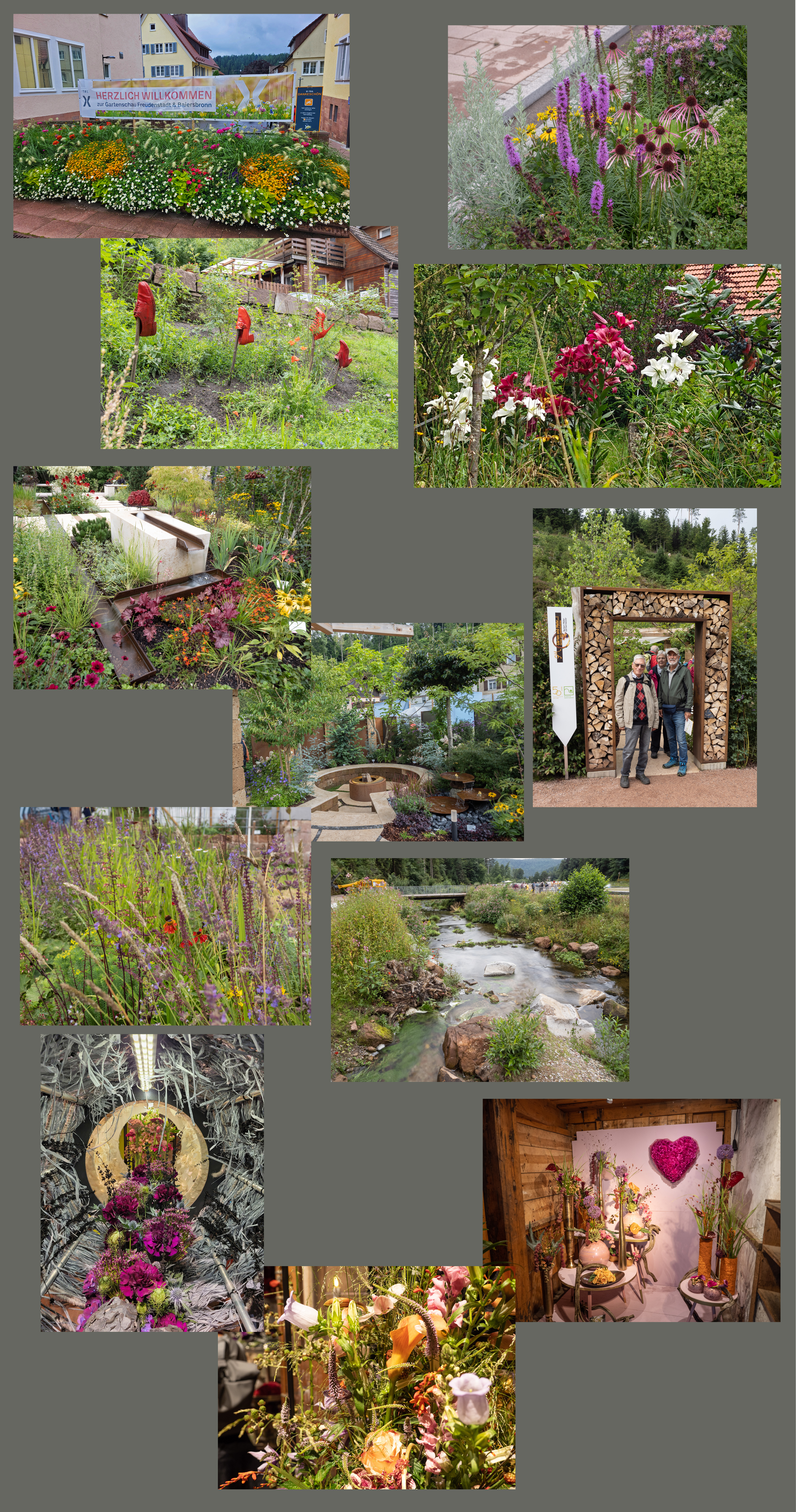 Mit einem leckeren Frühstücksbuffet mit großer Auswahl und bei sonnigem Wetter starteten wir in den zweiten Tag mit dem Besuch der Gartenschau Freudenstadt/Baiersbronn. Von Monika und Willi bestens betreut, gelangten wir vom mit großer Blumenpracht ausgestatteten „größten umbauten Marktplatz Deutschlands“ zum Eingang des Gartenschaugeländes und in die malerische Landschaft des Forbachtals. Zur Verfügung stehende Rikschas, Zügle und Busse erleichterten und verkürzten die 8 km lange Strecke des Gartenschaugeländes je nach individuellen Bedürfnissen. Auch unsere NF-Gruppe machte davon Gebrauch. Die diesem Bericht beigefügten Fotos machen deutlich, welch große Blütenvielfalt, Aktionen und Ausstellungen wir sehen und erleben konnten. Zwischendurch stärkten wir uns an den vielfältigen Ständen mit Essen, Getränken oder einer Tüte Eis, das bei der mittlerweile großzügig scheinenden Sonne besonders gut schmeckte. In Baiersbronn endete dann unser Gartenschaubesuch. Von hier aus ging es per S-Bahn zurück nach Freudenstadt. Dort waren wir in einem netten Lokal direkt am Marktplatz zum Abendessen angemeldet. Ein rundum gelungener Tag fand so seinen gebührenden Abschluss. (Erika W.)