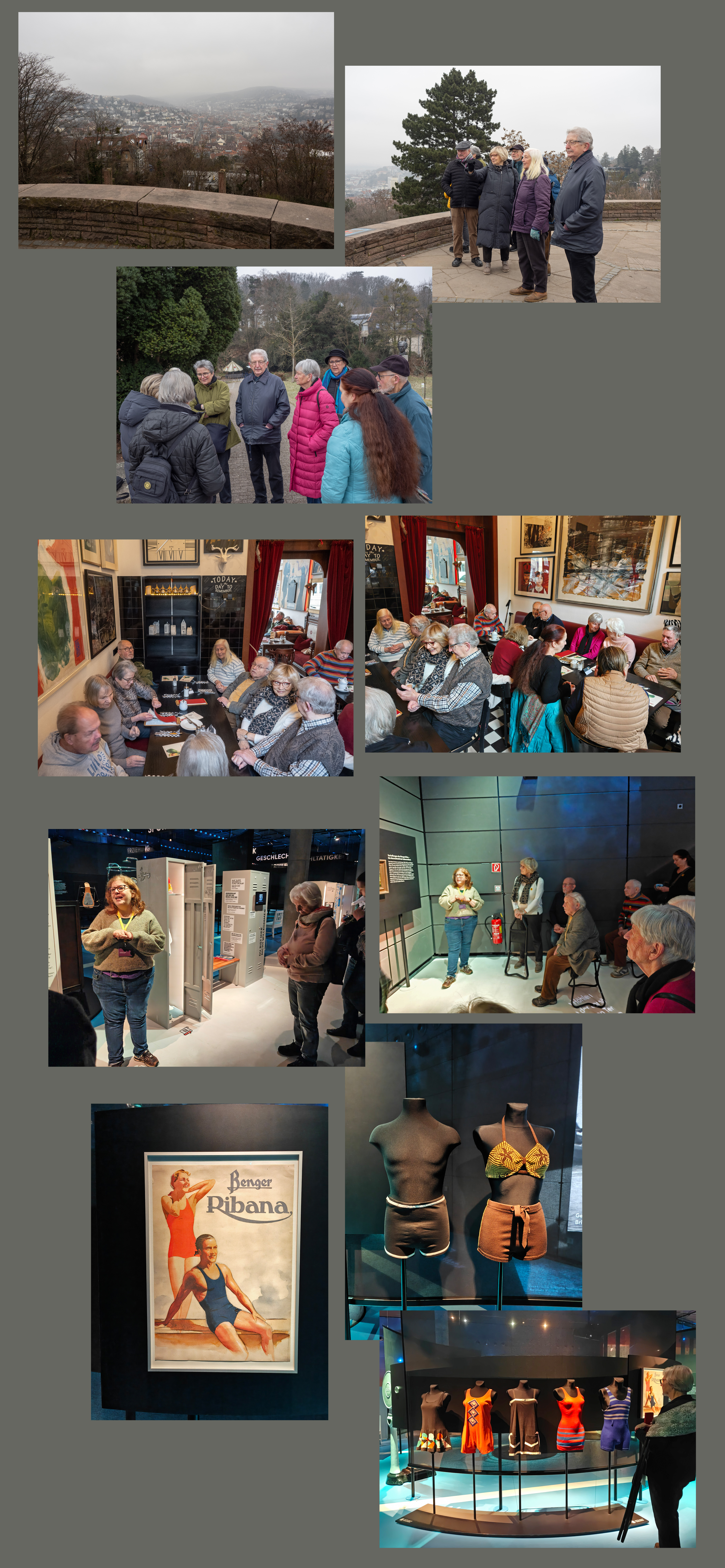 Den Besuch dieser Ausstellung im Haus der Geschichte unternahmen 19 Naturfreunde. Der naturnahe Teil war die kleine Wanderung vom Haigst durch den Bopserwald und den Weißenburgpark. Die Natur in Winterruhe rührte sich nur mit der Blüte der Haseln. Reizvolle Ort zum Verweilen waren das Teehaus und dort die Aussichtsterrasse. Unsere Einkehr in der „Academie der schönsten Künste“, einem Lokal mit Künstler-Ambiente und ausgefallener Karte, nahe dem Charlottenplatz, war fast allen unbekannt. Die Ausstellung ist thematisch sehr informativ und hochinteressant. Aber die einhellige Meinung war, dass die Präsentation zu textlastig war hinsichtlich zu lesender Dokumente und Projektionen. Die Führung ließ dazu wenig Zeit. Ohne Führung hätten wir davon mehr aufnehmen können. Für uns war schwer, sich vorzustellen, was in diesem nüchternen Ambiente der Reiz an einem textilfreien Besuch hätte sein sollen.